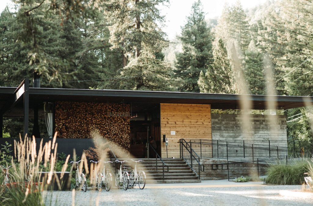 Wine Country meets the redwoods in Northern California for a grounded, “best of both worlds” vibe. You’re tucked into a quiet grove of redwoods but only 15 minutes from the coast of Northern California at AutoCamp Sonoma. With a mid-century Clubhouse the indoor-outdoor concept and open to the forest, It’s the perfect spot for a quiet ceremony in the redwoods, an adventure on the coast and an evening campfire back at camp.